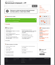 Раздел позволяет планировать периоды отключения, обслуживания и обновления информационных систем. Сотрудникам можно заранее знакомиться с плановыми периодами обслуживания и временем включения отключенных систем. Плановые события ведутся администратором портала или выполняется интеграция с системой планирования. Для мониторинга ключевых сервисов возможна интеграция со специализированной системой, например Zabbix или MS System Center.
