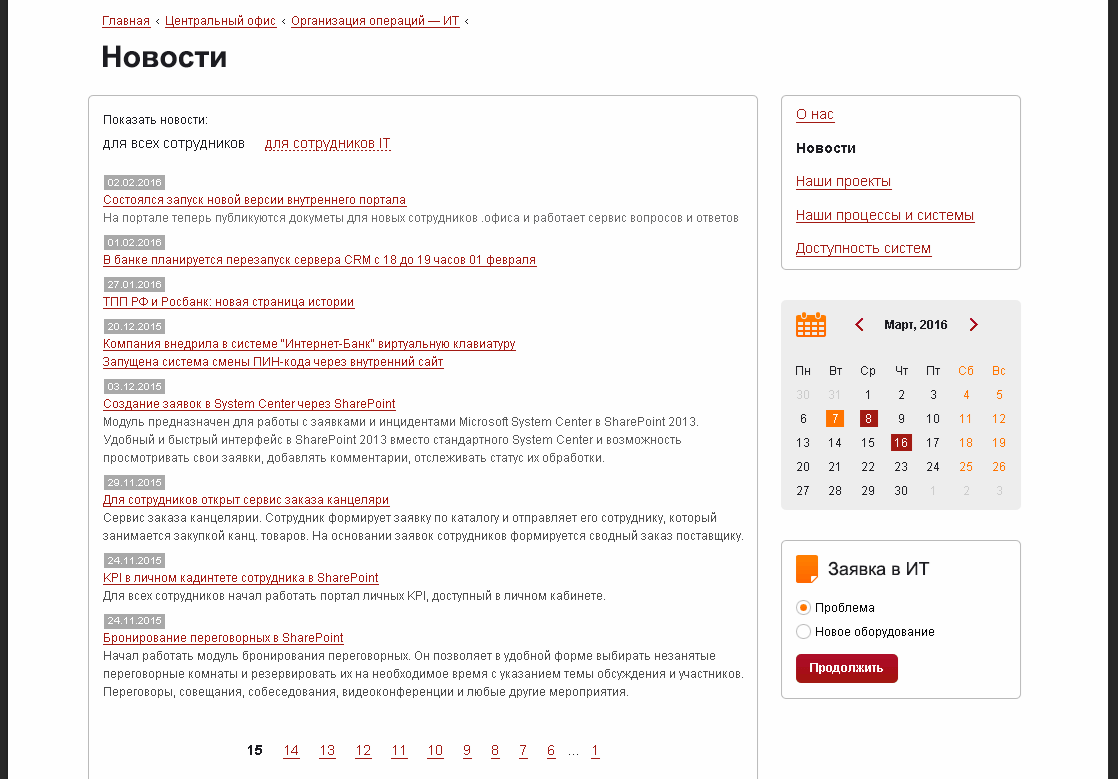 Раздел новостей позволяет всем сотрудникам знакомиться с событиями ИТ департамента